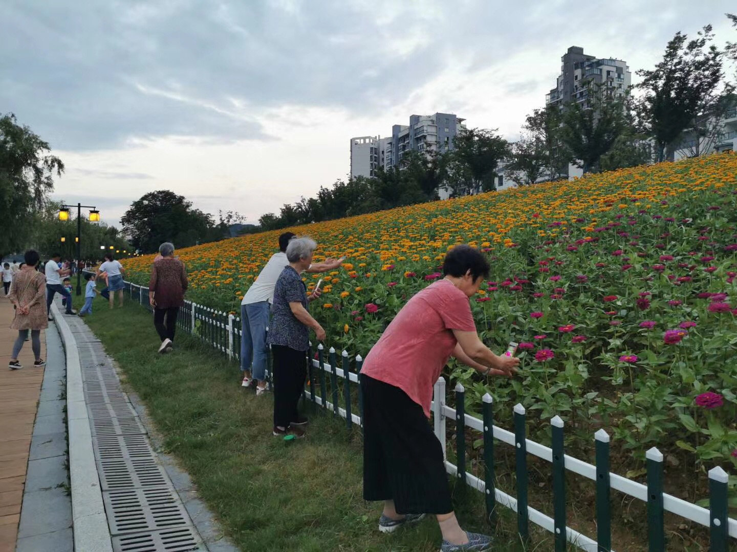 初夏的傍晚,新安江畔清風(fēng)徐徐,漫步在黃口橋頭南側(cè)江邊,成片的百日草錯落有致,迎風(fēng)搖曳,宛如一幅迷人的五彩畫卷,又似色彩絢麗的綢緞,唯美又浪漫,看到眼前的美景,市民游客紛紛駐足拍攝。