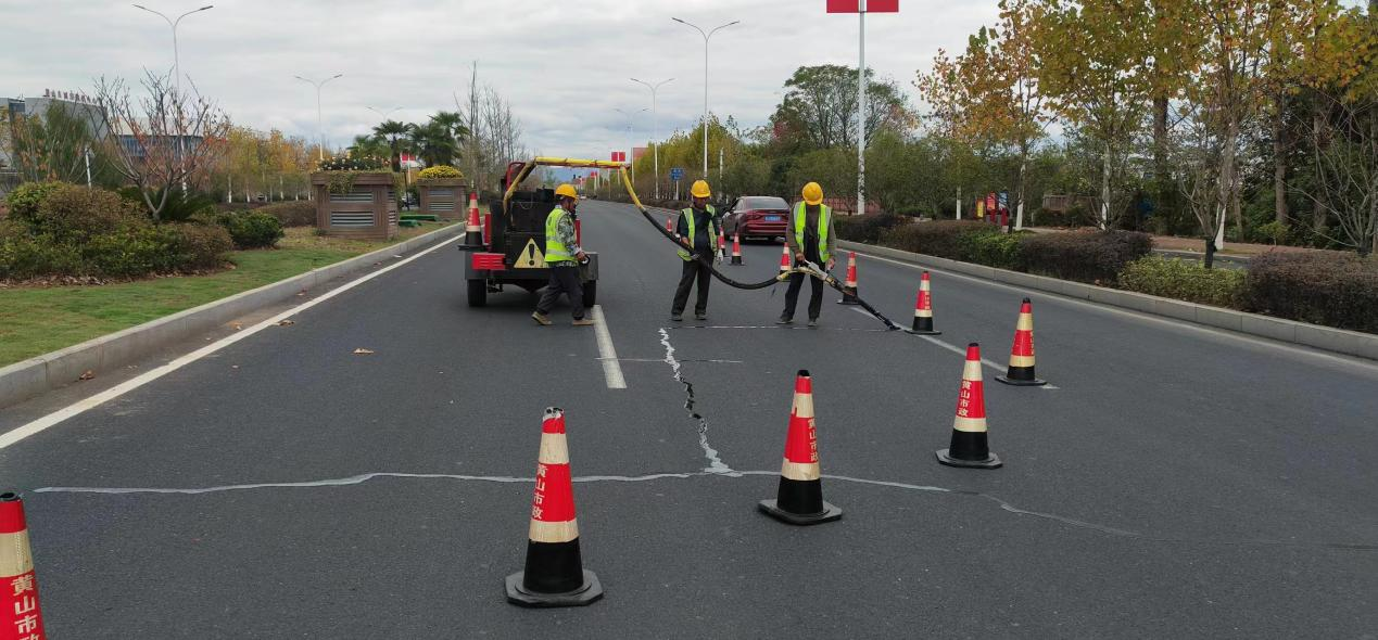 為提高瀝青路面路況質(zhì)量,改善道路行車(chē)環(huán)境和行車(chē)舒適性,近日,市政園林公司組織人員對(duì)迎賓大道、205國(guó)道巖寺—屯溪段部分路段道路裂縫開(kāi)展冬季養(yǎng)護(hù)作業(yè)。